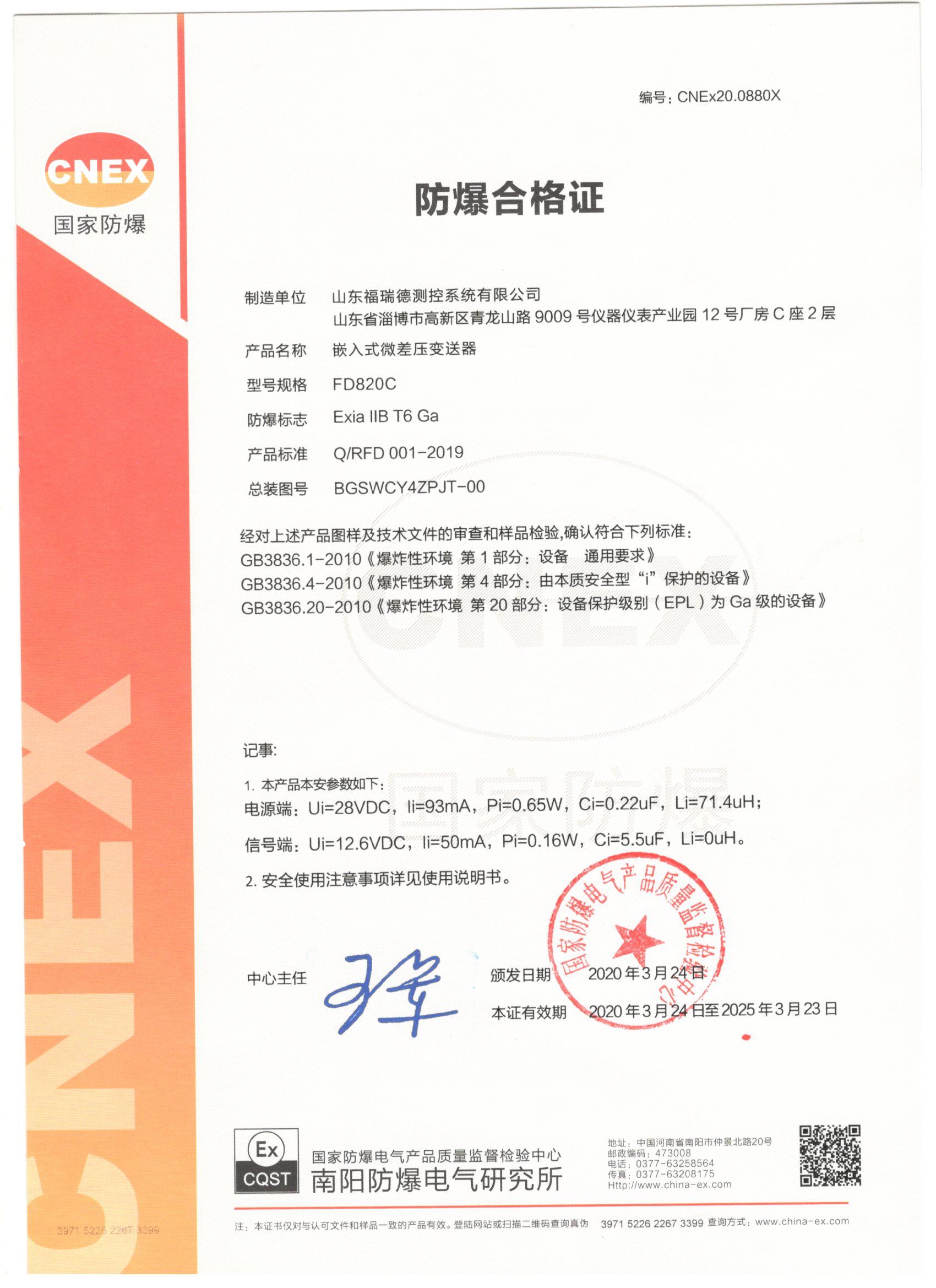 FD3051S防爆证-本安